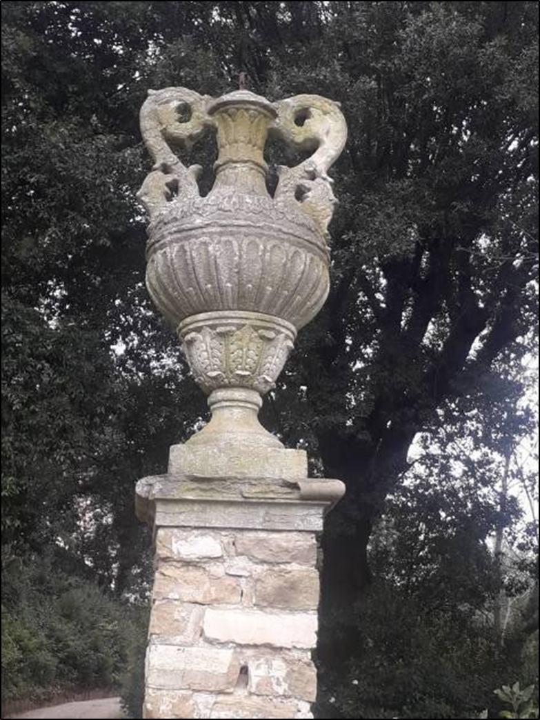 Le dimensioni considerevoli e l’impiego dell’elemento vegetale in metallo sono infatti caratteristiche riscontrabili in altre opere della medesima area geografica, come le urne settecentesche collocate all’ingresso dell’Orto Botanico di Padova e quelle del giardino Trissino Marzotto nei pressi di Vicenza.